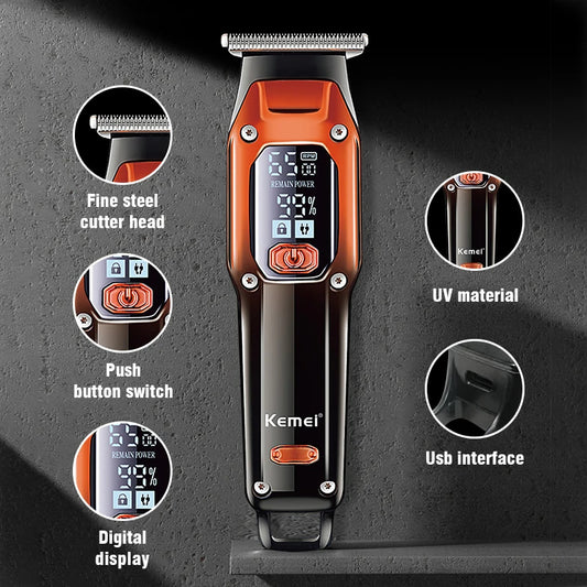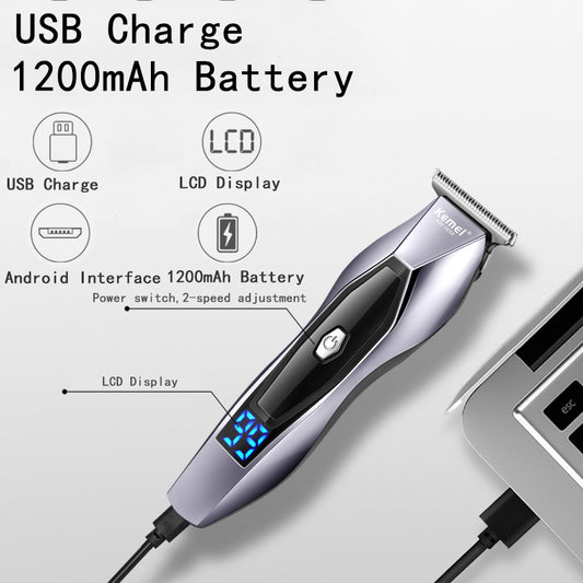 Kemei LCD Men's Electric Hair Clipper USB 1200mAh Electric Beard Trimmer Barber Hair Cutting Machine 2-Speed Adjustment 5W