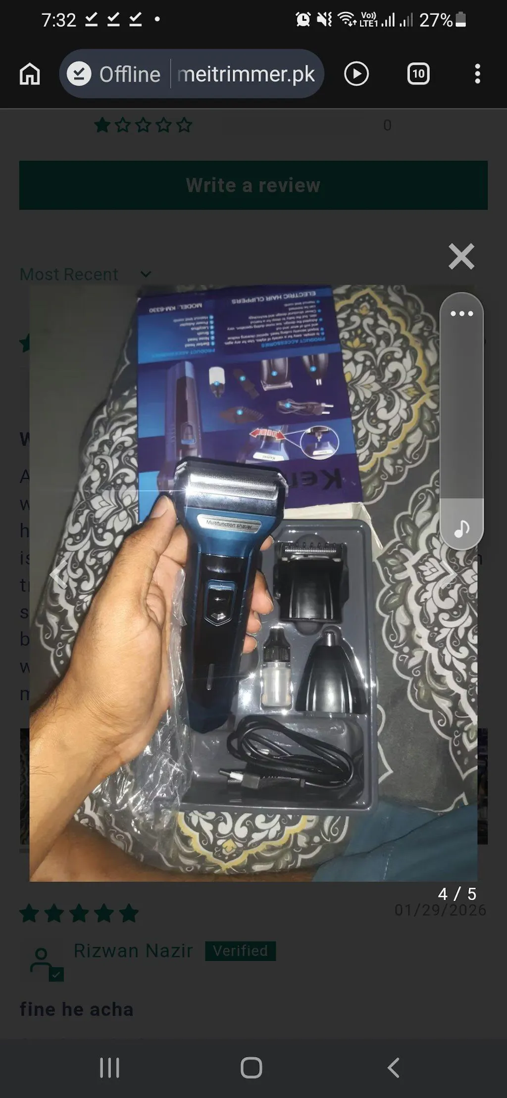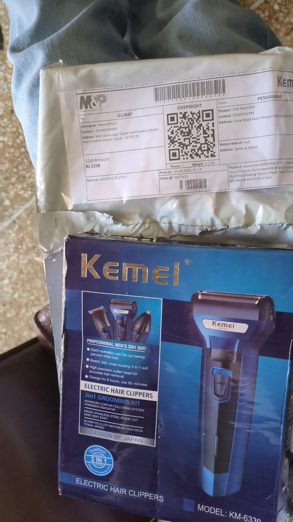 Assalam-u-alaikum. As seen even in your ad sir, i recieved wrong trimmer I recieved the parcel but wrong trimmer is inside. Fake product. No handbook inside ad well. As shown in pics. There is no label of Kemei and also no label of kemei on trimmer. On box log of kemei is on trimmer. This shaver is also not working. Not cutting hairs because it is fake. I want the replacement without any charges because it is senders mistake. Please cooperate with me. I have attached screenshots of review of other post O made for 6331